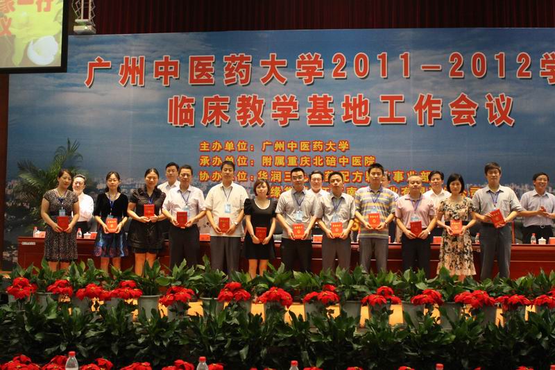 孙晓生副书记和刘晟副校长分别宣读了《关于表彰我校2010-2011年临床实践教学优秀带教教师的通知》、《关于公布2012年非直属附属医院教师聘任结果的通知》和《关于公布2012年教学基地兼职教师聘任结果的通知》,并向教学基地代表颁发了优秀带教教师奖励证书、奖金和新一任教师和兼职教师聘书。附属重庆北碚中医院尹平院长、附属深圳中医院黄彬副院长、附属佛山中医院李逸群副院长和附属宝安中医院林晓生院长分别介绍了医院临床实践教学的工作经验。