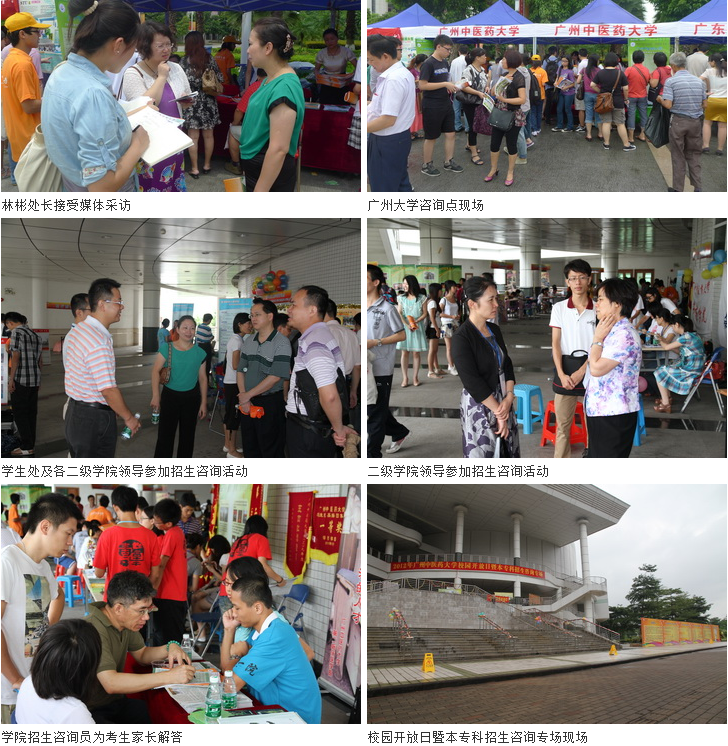 当天虽然时有小雨,仍有大量考生及家长前往大学城咨询参观。我校在广州大学主会场设置摊位,接受了数百位考生及家长的现场咨询。关于志愿填报的排序及注意事项、我校近年招生的录取分数线和就业率、就业分布等仍是最受考生及家长关心的几个问题。部分考生及家长还详细咨询了学校各专业的课程设置、培养方向、收费标准、住宿条件、录取原则和奖励政策等情况。现场共派发出数千份招生宣传资料。在校内招生咨询会场,学生处、教务处、团委、学生会分别设咨询点介绍学校学生管理、教学管理、团学组织、社团活动开展等情况。各二级学院纷纷摆出精心布置的展板,展示本院的教学资源、科研成果、学生活动奖杯等。学生志愿者们热情主动地为前来咨询的考生及家长介绍我校今年招生的基本情况及学校特色,务求提供专业详尽、细致周到的服务,展现良好的学校形象。南方日报、羊城晚报、南方都市报、新快报、信息时报等多家媒体对我校这一活动及本专科招生情况进行采访报道。