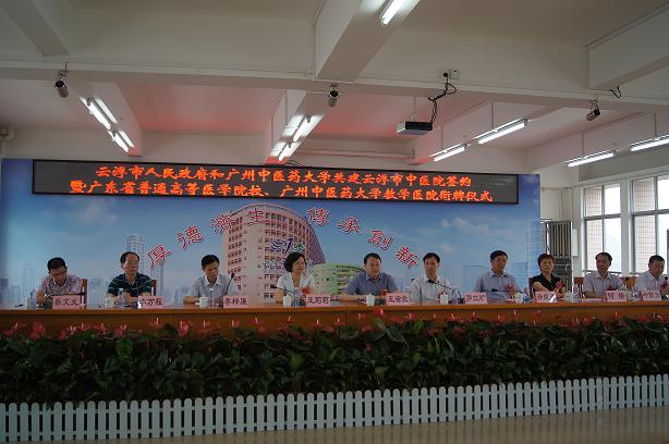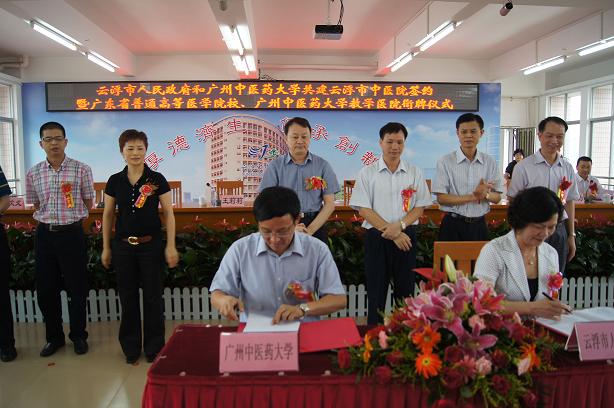 5月29日上午,我校与云浮市共建云浮市中医院签约暨教学医院挂牌仪式在云浮市中医院举行。省中医药局副局长李梓廉、学校校长王省良、副校长许能贵、云浮市人大常委会副主任罗立旷、云浮市副市长王莉莉、云浮市政协副主席何婧以及云浮市相关政府部门和校长办公室、教务处的负责人出席了签约仪式。