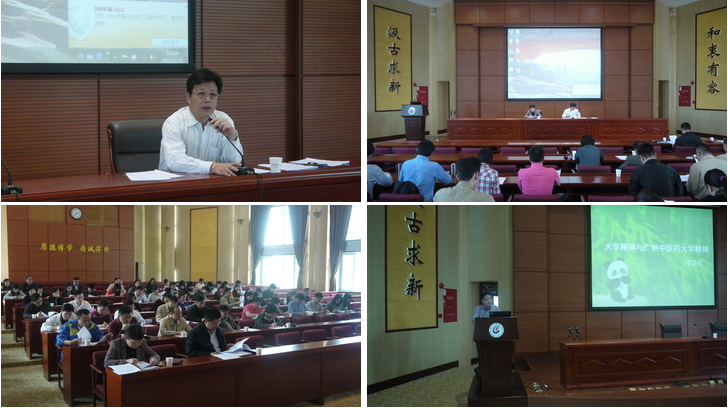 党委办公室主任邝卫红作了题为"大学精神与ac米兰官网中文网站精神"的专题演讲。邝主任从阐释大学精神的基本内涵和对高等学校科学发展的重要意义入手,具体介绍了ac米兰官网中文网站精神的凝练过程、基本特点和主要内涵,并就如何践行和弘扬广中医精神谈了自己的看法。指出必须纯洁大学的精神家园,注重科学精神与人文精神相互渗透、相互融合和相互促进,不断创新教育理念,树立国际视野和和谐理念。