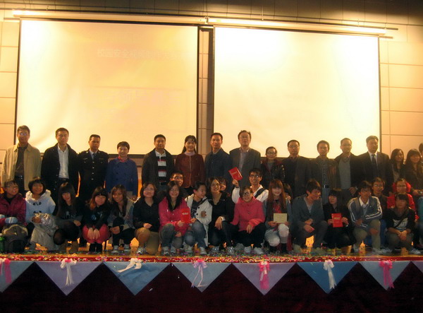 郭姣副校长在闭幕式的讲话中对今年校园安全文化节活动给予了充分肯定,认为安全文化节贴近师生生活,在教育师生提高安全意识的同时,突显了两个特点:一是充分展示了师生良好的创新意识、创新精神和创新能力,二是集中体现了师生良好的团队精神,这种创新能力和团队精神也体现在我校的综治工作中。一年来,在学校党委的领导下,各职能部门齐心协力,各位师生尽己所能,我校综治工作成效显著。面对成绩,郭副校长特别强调安全工作责任重大,使命光荣,学校综治工作要进一步集中精神,优化制度,彻底消除安全隐患,确保校园长治久安。