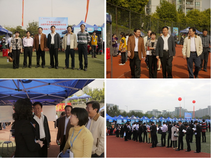12月6日,广东省2012届高校毕业生就业供需见面活动(医药类专场)在我校大学城校区举行。近200家省内外医药卫生系统的企事业单位和卫生行政部门前来参会,提供就业岗位共6200多个,岗位数比去年增加25%。来自全国医药卫生类院校约2万名应届本、专科及硕、博士毕业生参加了本场招聘会。广东省教育厅副巡视员、党组成员王玉学,省高校毕业生就业指导中心主任黄兆团,副调研员谢向军,学校领导黄斌、陈英华亲临现场指导工作。