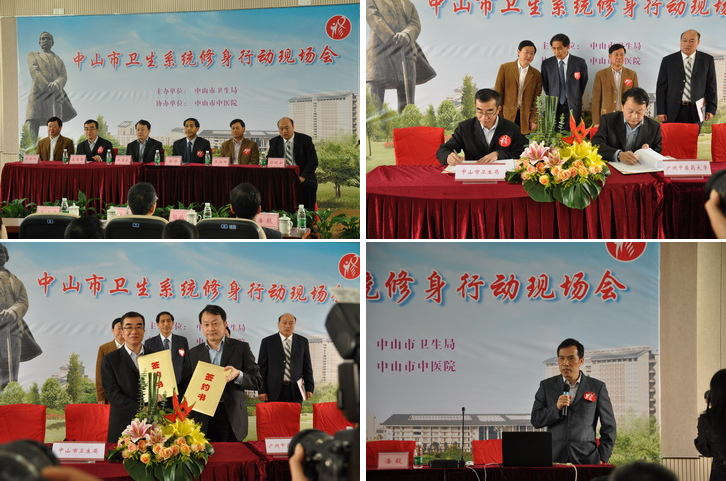 会上,中山市卫生局局长麦建章宣读了《中山市卫生系统修身行动倡议书》,发出了做好"大医精诚"、"廉洁高效"、"以德为先"、"博爱友善"、"健教科普"等"五项行动、十大工程"的号召,倡议医务人员通过修身行动营造健康文明的社会人文环境,合力谱写幸福和美中山的新篇章!会议还表彰了本次中山市卫生系统修身活动中评选出来的先进个人。中山市副市长唐颖向与会代表介绍了中山市全民修身行动的基本情况,指出了在卫生系统推行修身行动的重要性和必要性,期望通过加强与ac米兰官网中文网站合作,共同推进卫生系统工作人员人文素养,进一步优化医疗卫生环境。随后,我校王省良校长代表学校与中山市卫生局签订了"医学人文"合作协议,双方并就强强联合、逐步落实加强卫生系统工作人员人文素质教育的各项措施进行磋商。