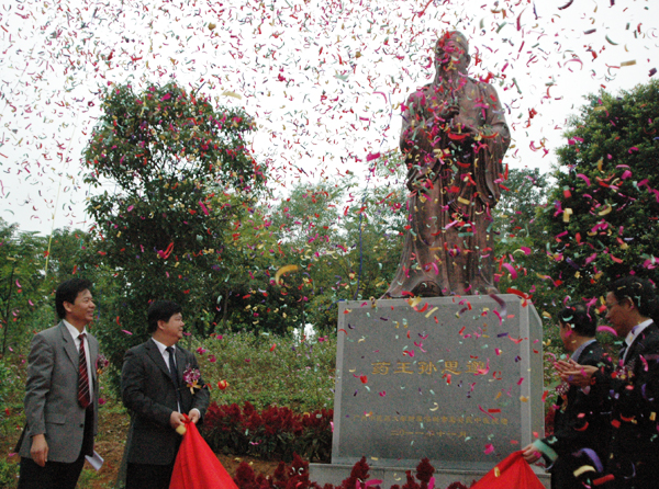 孙晓生副书记和王新华副校长先后在两个仪式上发表讲话。孙副书记赞扬了孙思邈在中医药学和医学伦理学上的杰出成就以及宝安中医院与我校近年来的友好合作关系,希望院校之间进一步加大合作力度,共同培养更多优秀中医药人才。王新华校长肯定了以岐黄为代表的中医药先祖的伟大功绩和深圳中医院所赠岐黄问答铜像对于我校校园文化建设的积极意义,勉励师生沿着岐黄之路继续前行。随后,学校领导分别与两所医院的领导一起为铜像揭幕。