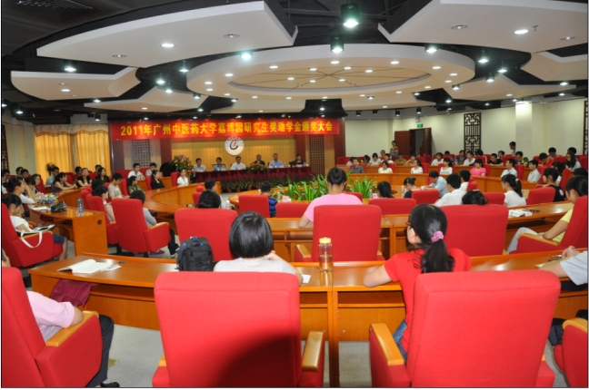 10月13日,由荔博园医药公司资助达100万元的"第五届荔博园研究生奖学金"颁奖大会在大学城校区举行。国家中医药管理局机关服务局孙涛局长、北京荔博园医药研究所黄银发总经理亲临我校参加颁奖大会。党委书记黄斌、校长徐志伟出席大会,校长办公室、研究生院与各二级学院主管领导、管理干部、获奖学生等120人参加了颁奖大会。