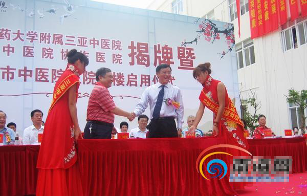 9月18日上午,三亚市中医院锣鼓喧天、鞭炮齐鸣,ac米兰官网中文网站附属三亚中医院揭牌暨协议签字仪式在这里隆重举行。副校长许能贵率领校办林辉主任、教务处梁沛华处长等出席仪式并讲话。许能贵副校长与三亚市中医院刘德喜院长分别代表学校和医院签署了建立附属医院关系协议书,并与三亚市委副书记、市长王勇同志为附属医院揭牌。三亚市中医院正式成为我校第20个非直属附属医院。 同时,广东省中医院协作医院揭牌暨中医院住院大楼启用仪式举行。卫生部副部长、国家中医药管理局局长王国强,海南省卫生厅厅长白志勤,第二附属医院(广东省中医院)院长吕玉波等领导出席了揭牌庆典仪式。