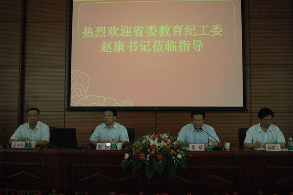 9月9日上午,教师节前夕,我校纪律教育学习月活动动员大会在大学城校区召开,党委书记黄斌同志作动员报告,省教育纪工委书记赵康同志应邀参加大会并作专题学习辅导报告。会议由党委副书记、纪委书记孙晓生主持,学校领导、副处级以上干部、党政职能部门工作人员、二级单位党委(党总支)委员、教工党支部书记、教研室主任、全体辅导员、思政课教师、师生代表近300人参加了大会。