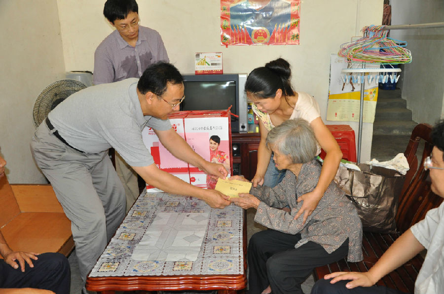 徐志伟校长与贵岭村干部进行了亲切座谈。在听取了镇党委领导、村干部的具体情况介绍后,徐校长指出,扶贫开发工作若要取得长久的实效,关键在于思想观念的转变与工作方法的创新,要通过帮扶提高和促进贫困户的自我发展能力才能真正脱贫,走上致富之路。针对贫困户实际情况,帮扶工作要本着因地制宜、因人制宜的原则,采取的措施要细致到位。此后,徐校长一行走访慰问了支部对口帮扶的贫困户,仔细了解各户的最新情况与存在的具体困难,认真听取他们对脱贫的意见和建议,了解扶贫资金的使用效果,并送上慰问金和慰问品。