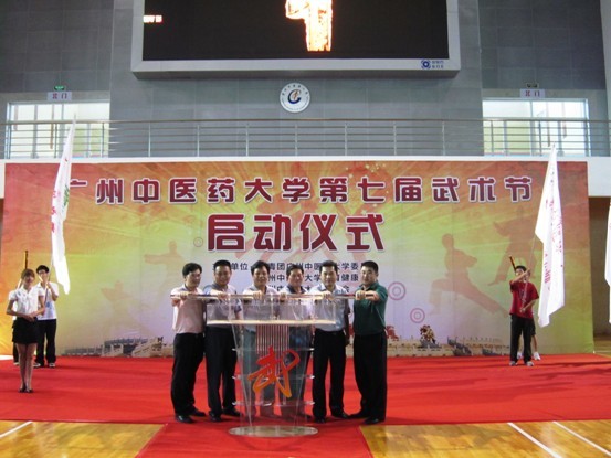 6月9日下午,由校团委、体育健康学院、校学生会、校研究生会主办的第七届武术节启动仪式在我校大学城校区体育馆举行。学校党委副书记陈英华、副校级领导林培政,以及党办、校办、学生处、团委等职能部门负责人和各学院领导出席了活动,来自全校的1000多名学生代表现场观看了启动仪式。