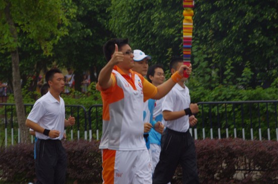 世界大学生运动会广州站的火炬传递活动,继续秉承大学生唱主角的宗旨,参与火炬传递的100名火炬手中共有52名在校大学生。其中,我校学生陆冠儒、李剑强很荣幸地成为火炬手,分别负责第25、26棒的火炬传递。上午10时,陆冠儒与李剑强进行了火炬交接,他们手持火炬彼此点燃的那刻,我校学生观众的情绪达到了最高潮,挥舞着国旗和校旗,欢呼声此起彼伏。火炬交接的瞬间,被无数相机定格为永恒。