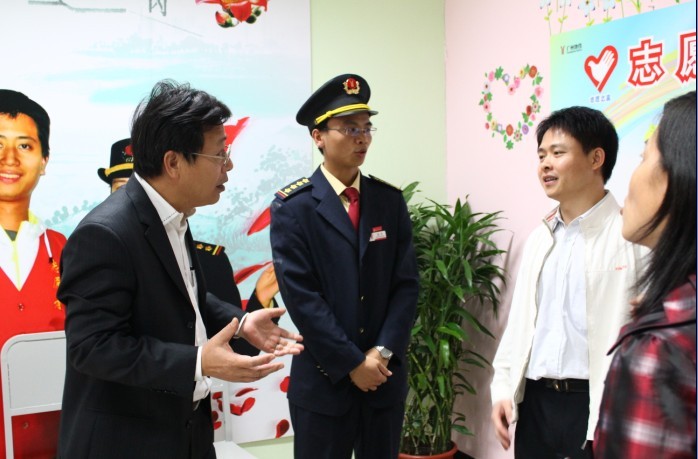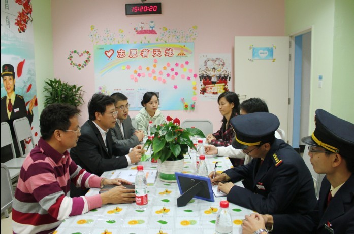 欢迎仪式结束以后,陈书记在地铁工作人员的带领下来到志愿者会议室、休息室,实地了解志愿者的日常工作、作息情况,对志愿者工作过程中的相关问题与地铁公司领导进行了交谈。其后,陈书记与地铁公司领导在会议室里召开了简短的志愿者座谈会。陈书记听取了地铁公司有关我校地铁志愿者工作的概况,并就接下来如何更好地开展地铁志愿服务交换了意见。陈书记在会上表达了学校党政领导和全校师生服务亚运,为保障志愿者工作所作努力,并且陈书记着重提出,在接下来的服务过程中,要将各学院学生工作的领导干部和辅导员,安排到志愿者工作一线来,与同学们一同作志愿者,一边为亚运服务,一边及时解决我们志愿者同学们工作中遇到的问题,鼓励和支持同学们出色完成亚运期间地铁的文明导行的工作。