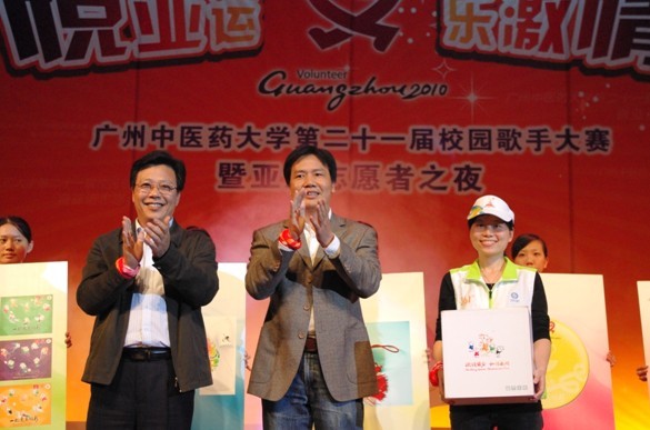积极参与志愿服务是现代社会文明程度的重要标志。志愿精神是个人对生命价值、社会、人类和人生观的一种积极态度。爱,是一种无声的诺言,是一种真诚的奉献,能让世界充满温暖,能让彼此友爱相待。我校的志愿者服务工作起步早、发展快,有着非常优良的传统。在本届的亚运会志愿者工作上,我校共派出了3430名志愿者服务于铁人三项、地铁公司等重要比赛场地和城市文明服务点。这是在座各位青年志愿者们的光荣,也是我校的光荣。学校党委希望广大志愿者努力发扬我校志愿者的优良传统,全情投入亚运服务,克服困难、积极工作、无私奉献,在亚运志愿者岗位上充分展示广中医学子良好的精神面貌和综合素质,为亚运做贡献,为学校争光彩。学校是你们的坚强后盾,将会为你们出色完成亚运志愿者任务,尽力提供全面的支持。