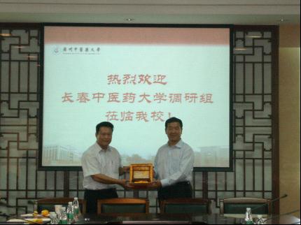 座谈会结束时,黄斌书记代表学校向长春中医药大学赠送了纪念品。会后,调研组一行到我校相关部门进行了对口交流。
