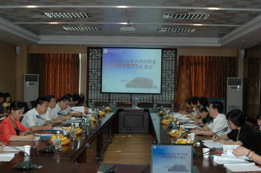 10月21日上午,省档案局监督指导处钟伦清处长带领省档案局专家组莅临我校,开展2010年度省直单位档案工作年度评估工作。专家组的正、副组长分别由中山大学档案馆黎启业馆长、广东药学院档案室王小丽主任担任,成员包括广州体育学院档案室张玫主任、广州体育学院评估办公室曲毅主任、广东农工商职业技术学院档案室陈琪主任、广东轻工职业技术学院档案室范红主任。