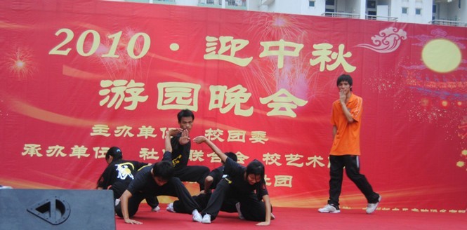 9月20日晚,由校团委主办,社团联合会、校艺术团和各校级社团共同承办的"2010迎中秋游园晚会"在学生生活区隆重进行。
