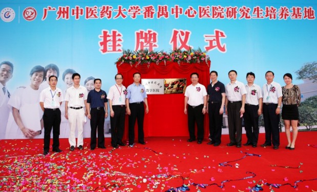7月9日,我校在番禺中心医院隆重举行研究生培养基地挂牌仪式。大学徐志伟校长、番禺区张力仁副区长、区卫生局罗文贤局长等领导同志出席了挂牌仪式,研究生处等相关职能部门同志,番禺中心医院院领导及业务骨干等120余人参加了本次仪式。