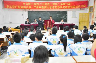 最近,在农工党省委会的大力支持下,农工党大学总支主委刘启德带领总支所属四个支部的代表奔赴怀集一中。在高考前夕,将最后一个学年度的捐款交给怀集一中,为同学们备战高考鼓劲、打气。至此,农工党ac米兰官网中文网站总支开展的"一帮三年"的怀集一中助学支教、医疗服务活动圆满结束。从2007年的怀集调研,到2008至2010年的三年帮扶活动,大学农工总支的党员先后有80多人次参加了活动,共捐款52800元,资助优秀贫困学子76位。农工党省委会副主委魏光群,社会服务处、宣传处、办公室等负责人也多次参加并指导这一活动。2008年和2009年,在为怀集一中优秀贫困学生送出爱心捐款的同时,总支还派出内、外、眼、中医、心理科医生进行了义诊和心理咨询活动,共开出处方近300多张,求医及咨询的师生人数达600余人,送出药品5000多元,受到了怀集县委、县教育局的好评,取得了良好的社会效果。