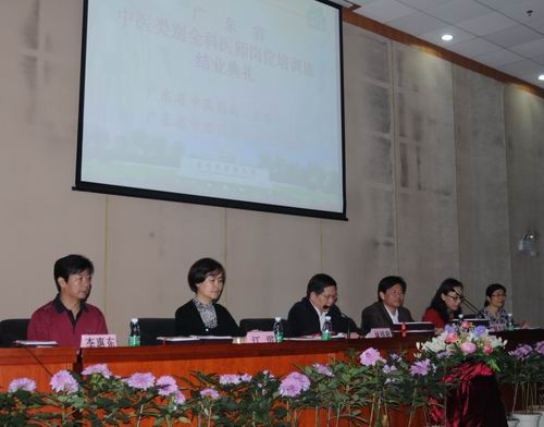4月22日上午,广东省社区中医类别全科医师岗位培训首期理论学习班结业典礼在我校举行,广东省中医药局领导同志,学校党委孙晓生副书记、林培政副校长、继续教育学院江滨院长和授课专家代表等出席了结业典礼。