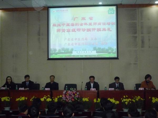 由广东省中医药局委托我校举办的社区中医类别全科医师岗位培训师资高级研修班在我校开班。来自广州、佛山、深圳、珠海、东莞、中山和江门6个地级市的42名学员将参加为期一周的师资研修。这将标志着广东省社区中医类别全科医师岗位培训工作正式启动。12月26日上午,国医大师、终身教授邓铁涛教授、广东省中医药局科教处李梓廉处长、学校党委黄斌书记、徐志伟校长、刘晟副校长参加了在三元里校区举行的隆重的开班典礼。广东省中医药职业学院、我校继续教育学院江滨院长主持了开班典礼。