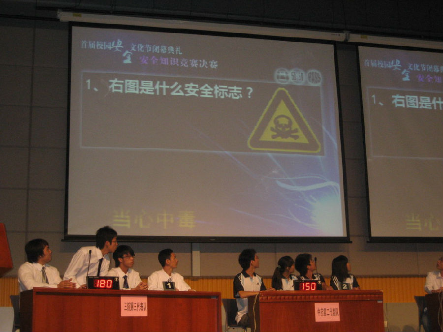 典礼现场,通过视频回顾了本届校园安全文化节各项工作的开展情况和取得的成果,并进行了校园安全知识竞赛决赛。校艺术团表演了贴近校园生活,反映校园安全的文艺节目。最后,陈副书记和有关职能部门领导一起,为本届校园安全文化节的优秀作品、"校园安全卫士"、安全知识竞赛优胜者颁奖。