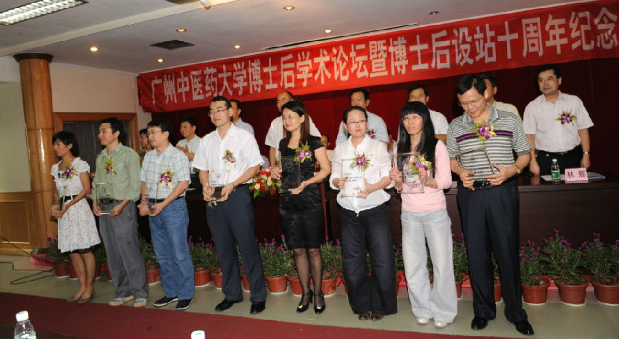 接着,陈蔚文副校长宣读了"优秀博士后"获奖名单,各位领导对获得"优秀博士后"称号的博士后研究人员进行了表彰。接着博士后合作导师刘茂才教授,博士后代表发言,分别就自身的工作谈了对博士后工作的体会,并对我校博士后工作的发展提了一些好的建议。