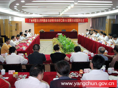 阳江市市委、市政府和阳春市委、市政府都非常重视我校与阳春市的合作项目。阳江市委书记林少春、阳江市政协主席韦丽坤、阳江市科技局局长吴红坚、阳春市委书记敖广恩、市长胡海广、阳春市政协主席关则荣等领导接待了我校考察团专家,阳江市市长李日芳、阳春市市委副书记林进球、阳春市副市长范绍荫、谢兴标,阳江市农业局局长彭创兴、阳江市林业局局长曾明以及阳春市市委办、市府办、市委农办、市人大农村工委和市农业局、市科技局等职能部门主要干部、各镇党(工)委书记或(街道)镇长(办事处主任)及有关企业负责人共约50人参加了研讨会暨签约仪式。