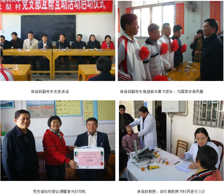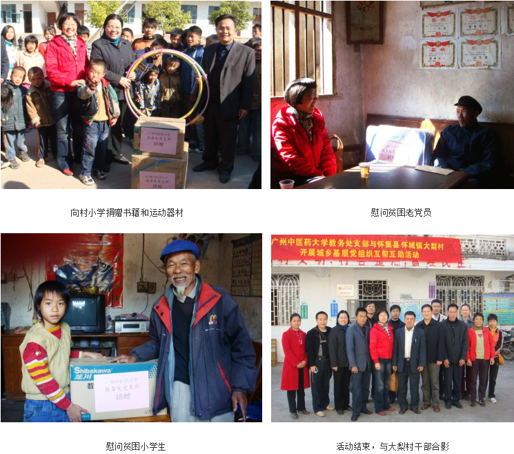 根据中共广东省委组织部《关于开展城乡基层组织互帮互助活动的意见》(粤组通〔2008〕7号)和学校党委《关于开展城乡基层党组织互帮互助活动的实施意见》(广中党组〔2008〕20号)的要求,直属教务处党支部于12月9日赴怀集县怀城镇大梨村党支部开展互帮互助活动。