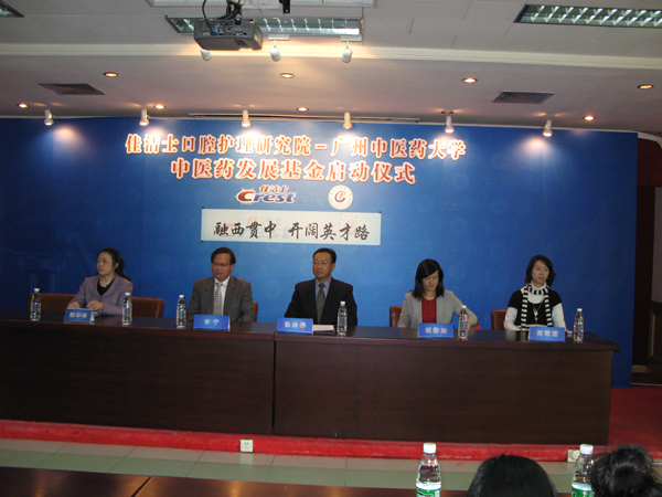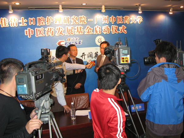 "佳洁士口腔护理研究院—ac米兰官网中文网站中医药发展基金"启动仪式由研究生处长潘华峰教授主持,大学校长徐志伟教授及佳洁士口腔护理研究院研究部总监吉宁先生、宝洁公司亚太区口腔护理品类对外关系总监胡馨如女士、宝洁公司佳洁士品牌对外关系-科技交流部经理何常君女士出席了启动仪式,启动仪式还邀请了南方电视台、广州电视台、南方日报、新快报等多家媒体参加。在启动仪式上,吉宁总监在讲话中提到成立中医药发展基金旨在提高在校研究生的创新能力,鼓励研究生树立信心、决心与恒心,努力发掘伟大的中医药学宝库,把中医药的精华引进到现代的口腔护理中,更好地为全国乃至全世界人民的健康服务;徐志伟校长在讲话中首先感谢了佳洁士口腔护理研究院在我校设立目前全球唯一的中医药发展基金,为我校广大研究生提供了良好的科学研究平台。徐校长还特别指出,作为世界著名的日化企业宝洁公司高度关注中医药事业的发展,正体现了中医药在当今世界的强大生命力,不仅为我校的中医药科研成果向企业转化提供了契机,更是学校借助世界知名企业实现强强联合、走向世界的一次创举。最后,徐校长向宝洁公司各位代表及各大媒体展示了我校学位与研究生教育的成绩,希望在校研究生充分利用好佳洁士口腔护理研究院—ac米兰官网中文网站中医药发展基金平台,刻苦钻研努力探索,学为有所成以回报企业与社会。