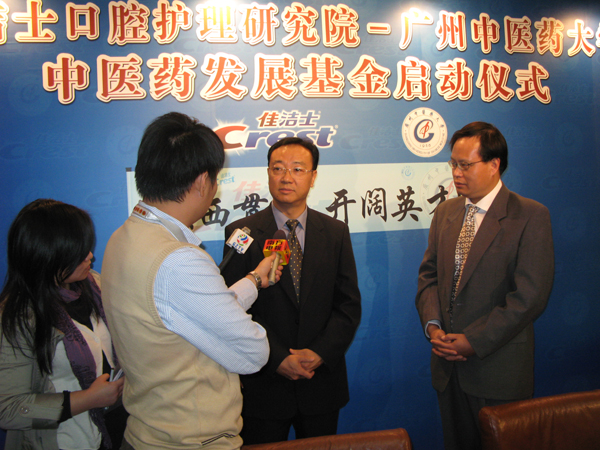 在我校刚刚颁发了第三届台湾校友研究生奖学金之后,今天学校又与世界著名日化企业美国宝洁公司属下的佳洁士口腔护理研究院签署了中医药发展基金,本基金是佳洁士口腔护理研究院在全球的首个中医药发展基金。