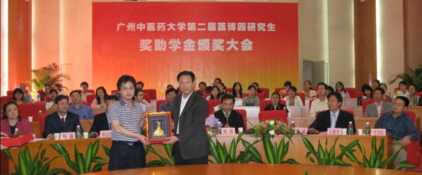 11月25日下午,在学校圆形会议举行了第二届ac米兰官网中文网站"荔博园研究生奖学金"颁奖大会。国家中医药管理局机关服务局局长孙涛、荔博园医药研究所经理黄银发,学校党委书记黄斌、校长徐志伟、副校长王新华、副校长刘晟及各二级单位领导出席了颁奖大会,并为获得奖励和资助的22名贫困优秀研究生颁发了奖状和资助金。