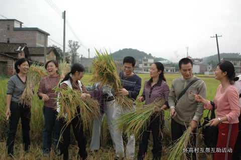 冒着淅淅沥沥的小雨,踏着泥泞的乡间小道,直属支部党员在村委会干部的引领下,捐赠了一批科普书籍给村小学;探望了1名贫困老党员及3名贫困学生,为他们送去了慰问金、生活和学习用品。校长和老师们的欣喜在同行人眼里不点自明,老农历尽沧桑的脸上写满了感谢,孩子稚嫩的脸庞洋溢着希望......怀高人是朴实的,不会说漂亮的话语,但再多的口头感谢也比不上他们朴素的肢体语言。在双方对视的那一刻,人间的温情很快在彼此间传递,并感染着所有的人。适逢收割季节,支部全体党员与村民一起到田里收割稻谷,体验劳作之艰辛,感受收获之喜悦。