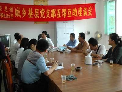 在苍龙村委会办公室,校办党支部与苍龙村党支部共同召开组织生活会,一起学习党的十七届三中全会精神,围绕深入贯彻中央精神、努力建设社会主义新农村进行了热烈讨论。梁妙极代表苍龙村党支部,介绍了村里的基本情况和近期发展思路,感谢校办党支部的关心和帮助。在村党支部和村委会的带领下,苍农村正在积极筹划铺设3.5公里水泥村间公路,改建2.4公里村内小路,兴建2幢厂房,建设2个文化组。校办党支部书记杜同仿介绍了我校的基本情况,认为苍龙村党支部全心全意为村民办实事的精神值得敬佩和学习,我们要把苍龙村党支部好的工作作风带回学校,心中时刻念着农民兄弟、想着基层群众,进一步解放思想、转变观念、改进作风。大家表示保持联系,共同促进农村的改革与发展,争取有更多实质性的成效。组织生活会前,杜同仿代表校办党支部,将两大袋衣服交给苍龙村党支部,托其转赠生活贫困的群众和党员。