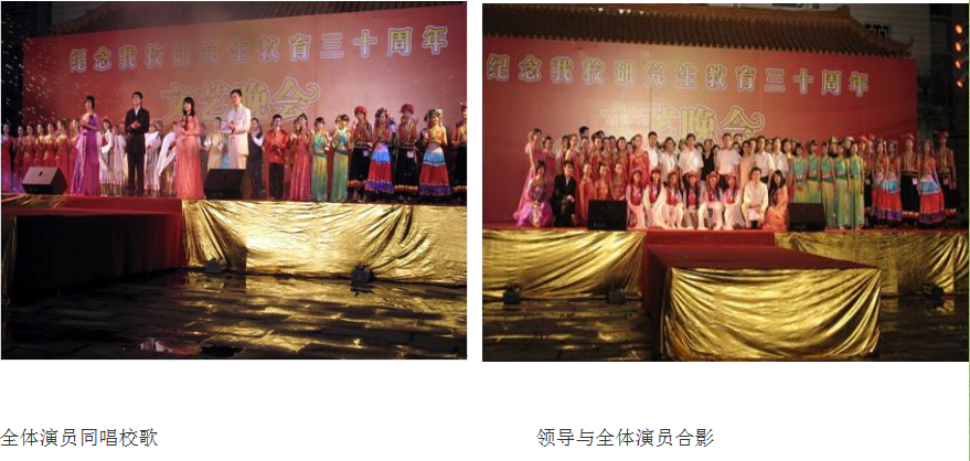 今年是我校开展研究生教育的三十周年。作为系列纪念活动之一,本次晚会以"汇聚梦想,谱写华章"为主题,回顾研究生教育三十年的光辉历程和丰硕成果,并用精彩的文艺节目展现了我校研究生良好的精神风貌和全面的综合素质。