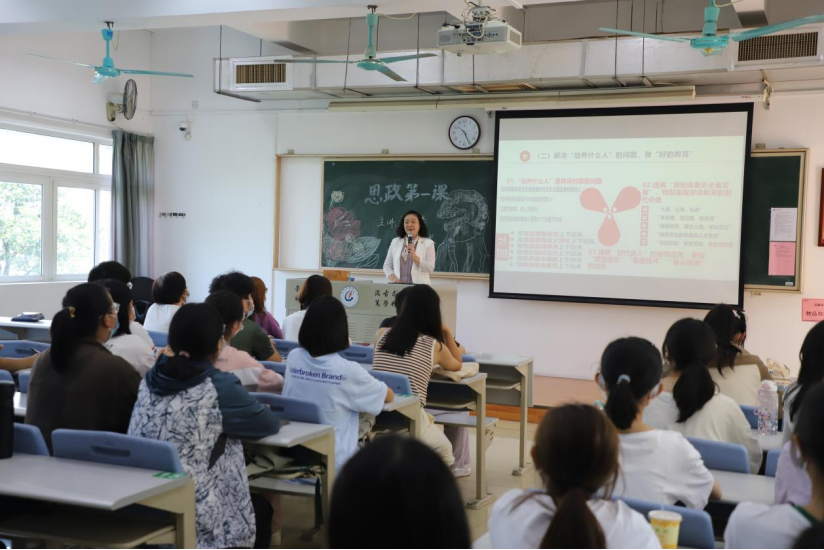 9月26日上午,副校长潘华峰以“立德树人,在奋斗中创造精彩人生”为题,为公共卫生与管理学院2022级公共事业管理和应用心理学两个专业共百名新生主讲“思政第一课。