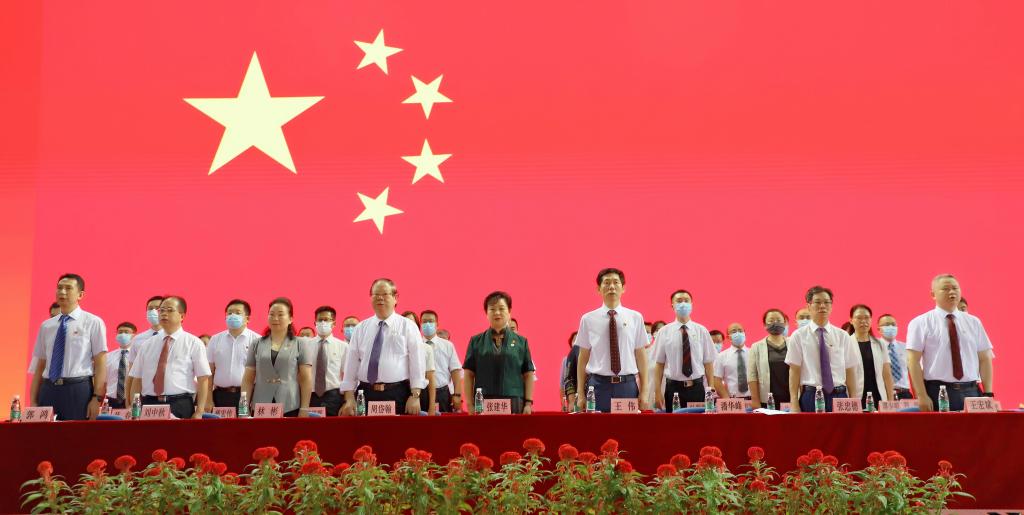 上午9时,典礼在雄壮的国歌声中拉开序幕。