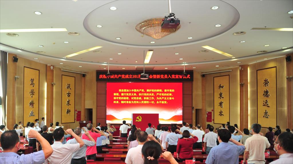 会上,新党员进行入党宣誓、老党员重温入党誓词,新党员和优秀党员代表发言。学校领导、新党员代表、中层正职干部和二级单位(部门)主持工作副职干部等近100人参加会议。