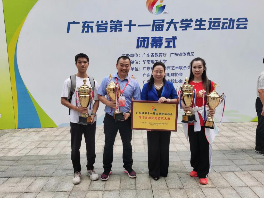 广东省第十一届大学生运动会(下称“省大运会”)于2022年5月8日至6月30日举行。来自全省150多所高校、约2.3万人参加,我校运动队历经一个月的比赛以乙A组金牌榜第三、17金12银15铜、两项团体第一名的佳绩完美收官!