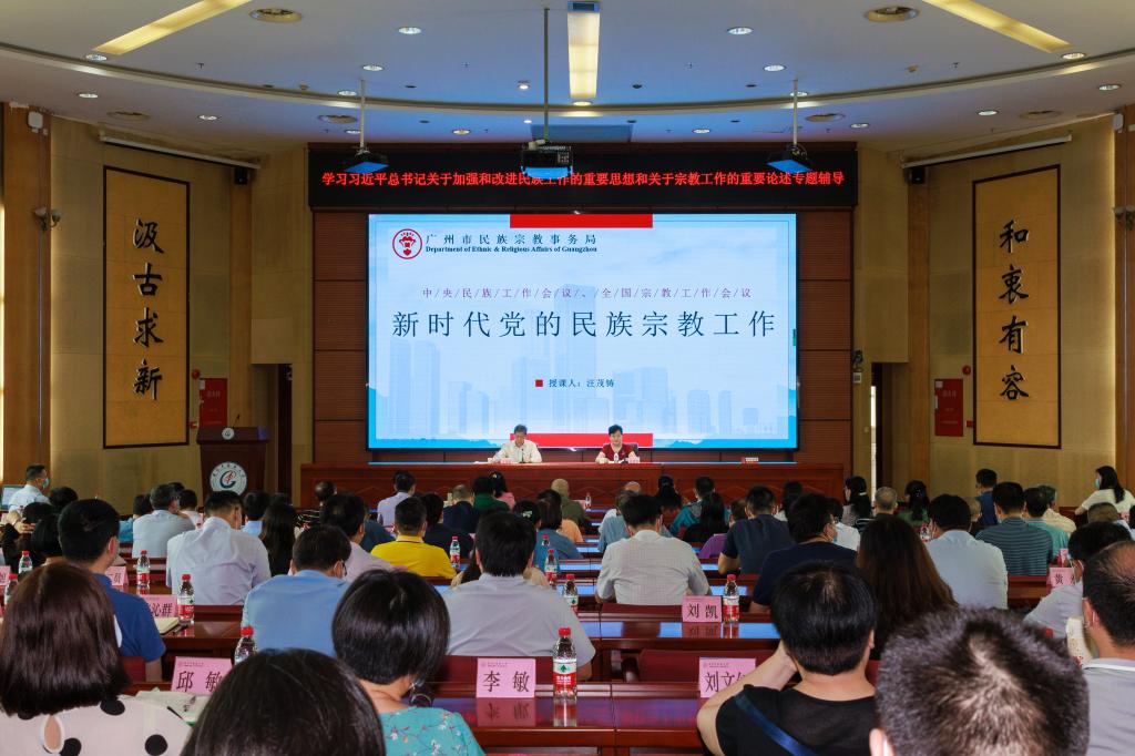 汪茂铸全面解读了中央民族工作会议精神和全国宗教工作会议精神,介绍了广州民族宗教工作特点以及广州高校民族宗教工作基本情况,分析了民族宗教工作面临的形势挑战和重点任务,对深刻领会习近平总书记关于加强和改进民族工作的重要思想和关于宗教工作的重要论述,正确把握民族宗教工作的正确方向,掌握民族宗教工作方法提出了宝贵意见。