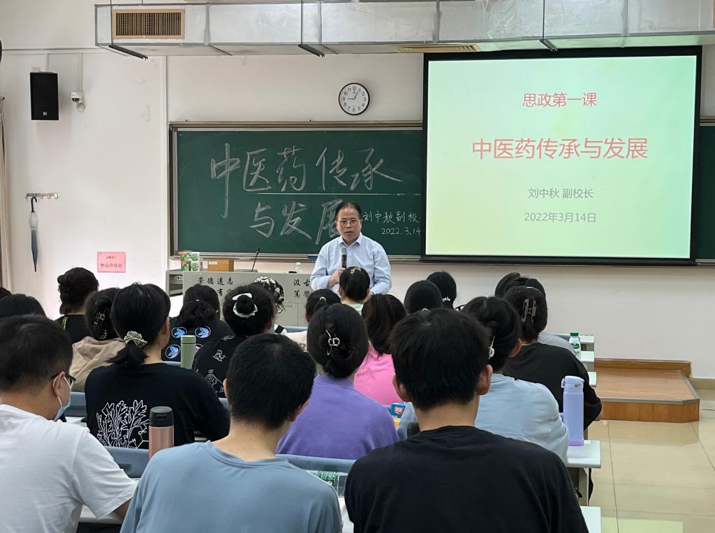刘中秋副校长用通俗易懂、幽默风趣的言语,结合相关专业知识,给同学们带来一堂生动的“思政第一课”。不仅让学生更加坚定选择中药学专业的初心,也进一步明确了新时代大学生的使命和担当。