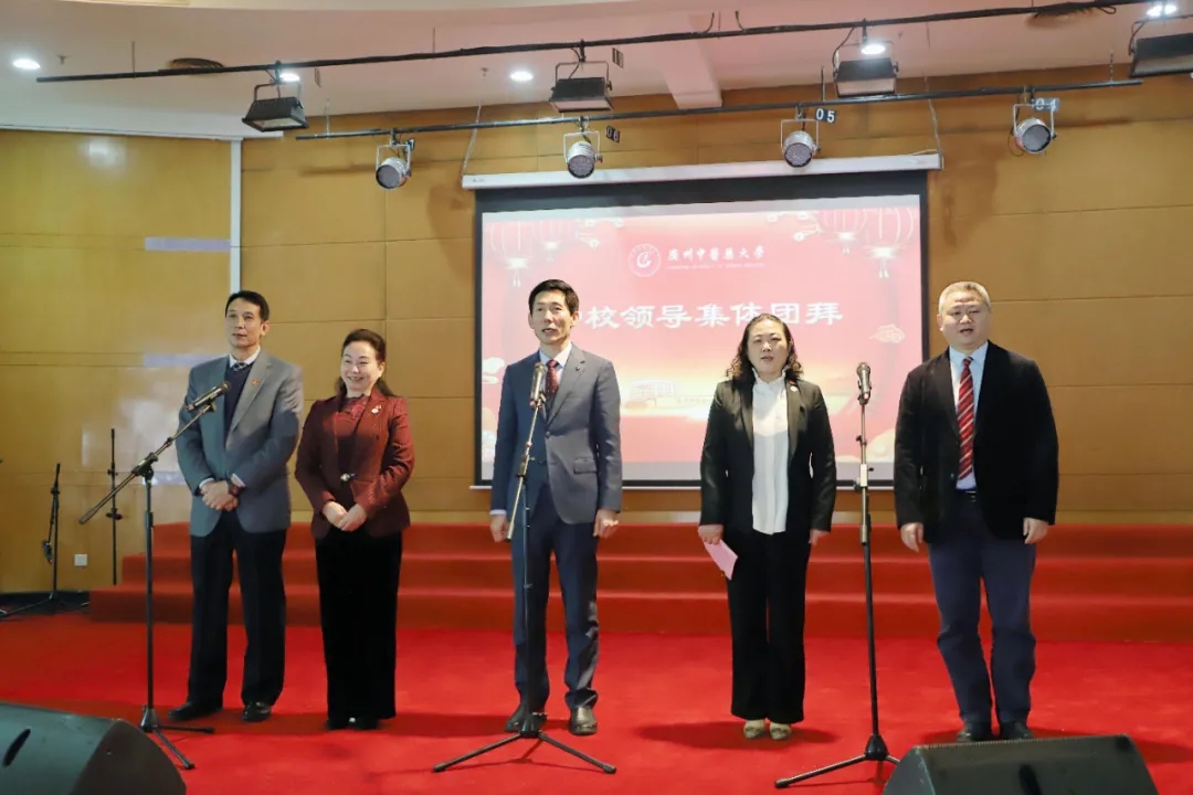学校领导集体上台向大家拜年,致以新春问候和美好祝福。ac米兰官网中文网站第二附属医院(广东省中医院)林毅教授、顺德医院院长王大伟同志分别作了发言。团拜会上表演了精彩的节目,公布了学校2021年度十大新闻。出席团拜会的还有历届校领导、直属附属医院及校政共建医院主要负责人、党政管理部门及二级单位主要负责同志、民主党派人士、一线教职工及学生代表。