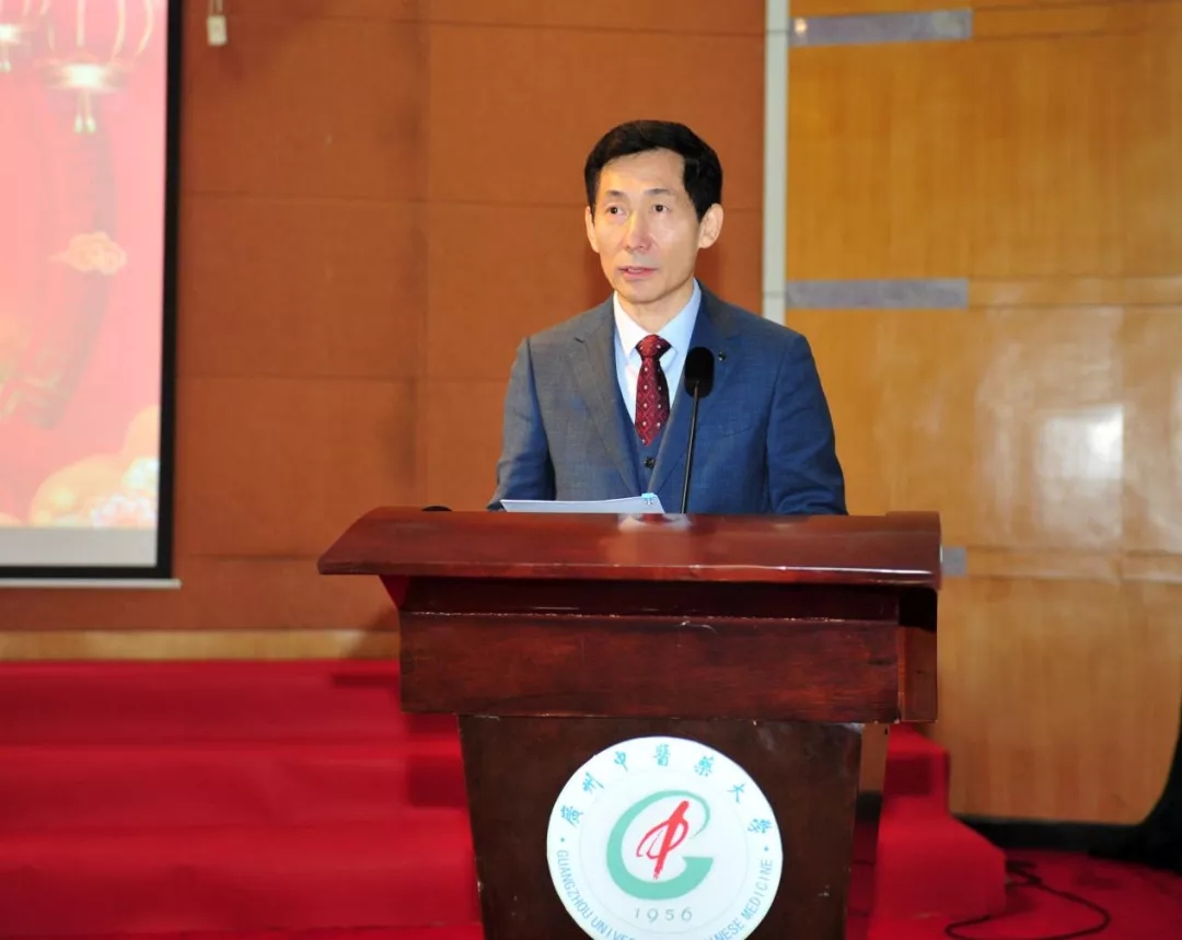 王伟在讲话中回顾了一年来学校取得的显著成绩。2021年学校坚持以习近平新时代中国特色社会主义思想为指导,深入贯彻落实党的十九届六中全会精神,扎实推进党史学习教育,积极迎接省委巡视整改,建章立制,不断提升大学治理能力,为学校发展注入新的动力。坚持立德树人,获批广东省高校“三全育人”体制机制建设试点单位,顺利通过教育部本科中药学专业认证;坚持引育结合,整体引进院士团队入驻国家重点实验室,获评岐黄学者4名,入选岐黄传承创新团队2个,入选岐黄交叉创新团队1个,通过第四批国医大师专家评审1人,通过全国名中医专家评审2人;坚持学科引领,成功进入新一轮“双一流”建设,首轮“冲补强”建设取得优异成绩,“省部共建中医湿证国家重点实验室”正式获批建设,横琴国家中医药技术创新中心正式签约并进入落地实施阶段;坚持医教协同,第一、二附属医院入选国家区域医疗中心建设输出医院,校政合作共建医院发展势头良好。坚持“人民至上”,坚决筑牢校园安全防线,打好疫情防控战,学校及附属医院共派出专家100人次支援全国7省份抗疫以及医护人员超4600人次支援全省抗疫。
