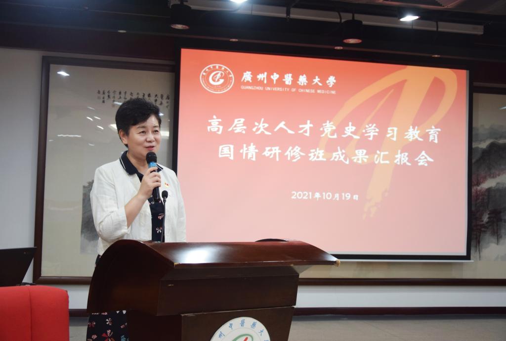 张建华充分肯定了本次研修班对高层次人才党史学习教育的积极作用,指出要把年轻人才的培养放在党委人才工作的重中之重,并提出三点要求。一是要全方位培养、引进、用好人才,着重培养年轻人才的理想信念,完善知识结构,锤炼为党和国家做贡献的品格,努力成为践行为人民服务为宗旨的社会主义建设者。二是要理清思路找准目标,学深悟透习近平总书记有关中医药事业的重要指示批示讲话精神,把握中医药发展的好时机,接力发展中医药事业,扎根中国大地办好世界一流的中医药大学。三是要向老一辈无产阶级革命家学习,不畏困难、开拓创新,在教学、科研和临床中牢记革命先烈精神,赓续红色血脉,充分利用红色精神的力量鼓舞自身,影响同事,教育学生,培养德智体美劳全面发展的社会主义建设者和接班人。