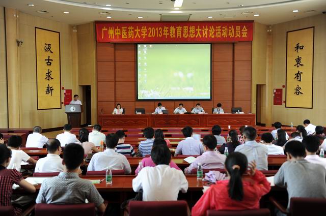 5月31日下午,"2013年教育思想大讨论活动动员会"在大学城校区办公楼二楼学术报告厅召开,校党政领导黄斌、王省良、张建华、许能贵,潘华峰以及中层副职以上干部、党政职能部门全体管理干部、各二级学院教学管理干部、教研室主任、教师代表、全体政治辅导员、学生校长助理和学生教学管理委员会成员等共约200余人参加了会议。广东省教育厅高等教育处处长郑文应邀出席会议并作了主题讲座。会议由王省良校长主持。
