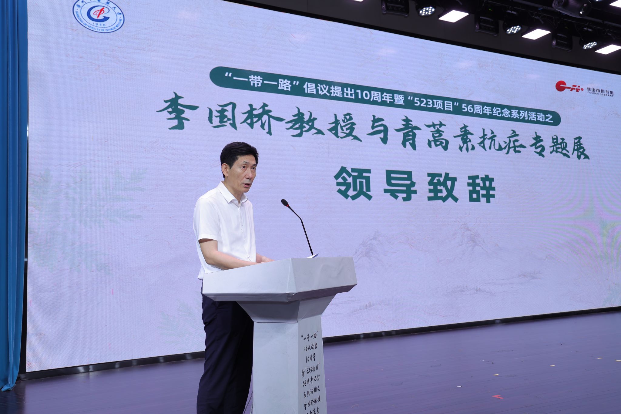 5月23日下午,在佛山图书馆我校与该馆共同举办“李国桥教授与青蒿素抗疟专题展”纪念“一带一路”倡议提出10周年暨“523项目”56周年,展示老一代中医药科学家李国桥教授和其团队在青蒿素防治疟疾的临床研究中做出的努力和取得的突出成果,尤其在国际医药卫生交流方面做出的杰出贡献。ac米兰官网中文网站校长王伟,佛山市卫生健康局党组书记练凌东以线上、线下方式参加纪念活动并致辞。王伟校长为常驻国外3年以上的5位青年援外人员颁发了感谢状。学校党委副书记邱亚洪主持纪念活动。