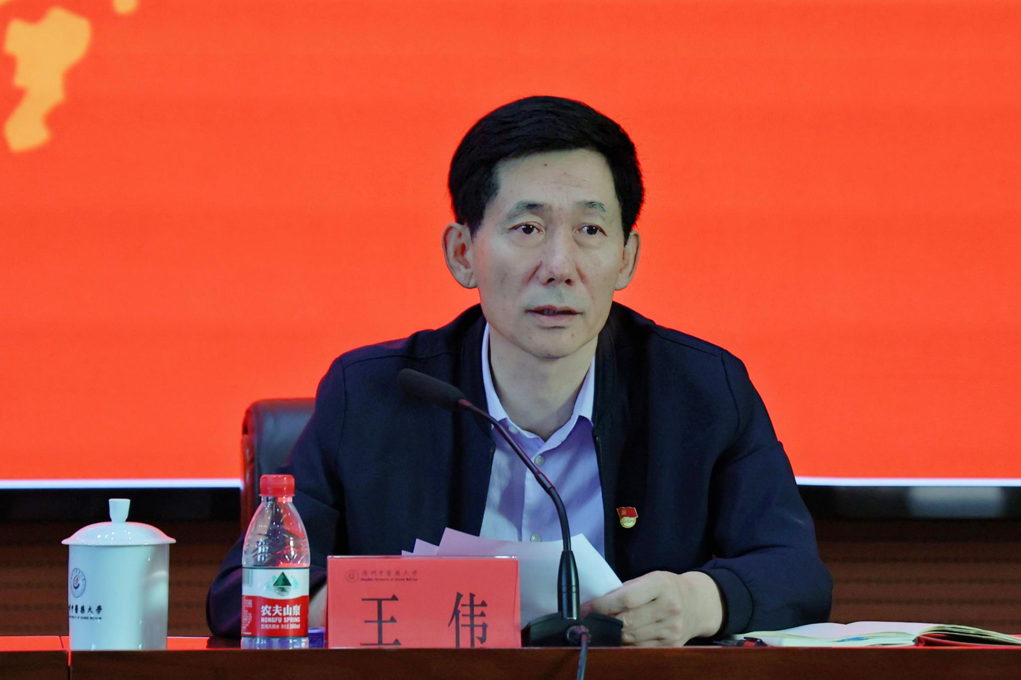 王伟传达余艳红书记来校调研时对学校建设提出了三点要求:一是要推进中医药特色发展、内涵发展、转型发展、融合发展。要深入学习贯彻党的二十大精神,推进教育、科技、人才三位一体融合发展,坚持走内涵式发展道路,培养出一批复合型的既能看病又能教育又能科学研究的人才,还要有能够引领把握传统医药发展前沿,推动中医药走向世界舞台的人才。二是要深化体制机制改革。通过科学的顶层设计和清晰的路径规划,把竞争性的资源分配好,给所有的教职员工创造一个公平公正的环境,营造学校发展良好氛围。要做好管理及服务,充分给二级学院放权,进一步焕发办学活力。中医团队要抱团作战,握拳出击,学校要凝练发展方向,汇聚全校力量实现重点突破,充分释放发展动能。三是牢牢掌握学校的核心竞争力。要高标准高质量建设好使用好中医证候全国重点实验室,积极整合资源参与横琴中医药重点实验室建设,积极争取国家重点研发计划、国家重大科技计划专项等重大项目,用现代科学技术解读中医药学原理的重大时代课题,深入推进中医药科研创新,团结行业内外各学科优秀团队力量,着力补上中医药科技创新领域的短板,产出一批具有原创性、突破性的创新成果。要思考如何保持和发扬中医药文化方面的优势和特色,在推动中医药发展上发挥更加突出的作用。