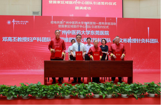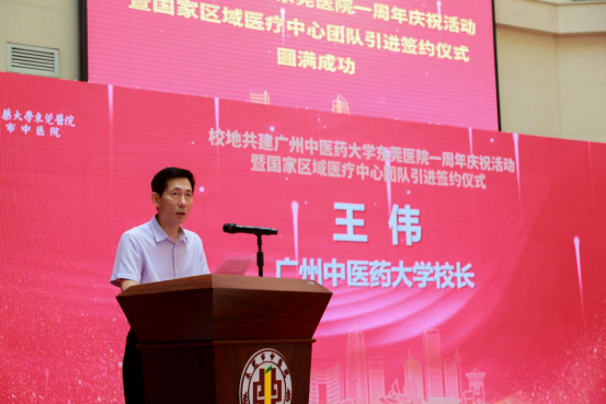 8月31日上午,王伟校长参加了在ac米兰官网中文网站东莞医院举行的东莞市人民政府与ac米兰官网中文网站校地共建东莞医院一周年庆祝活动暨国家区域医疗中心团队引进签约和拜师仪式。来自学校第一附属医院和第二附属医院(广东省中医院)的9大国家区域医疗中心团队签约落地东莞,标志着校地合作共建工作步入了新阶段,这为打造粤港澳大湾区中医药高地、推动东莞医疗卫生事业发展、推进健康东莞建设注入新动能。