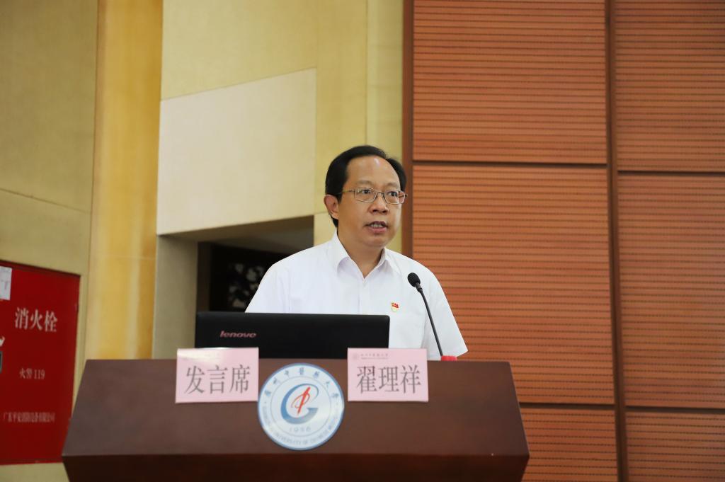 7月7日上午,学校在大学城校区办公楼201学术报告厅召开党委理论学习中心组扩大会,学习全国全省“两优一先”先进事迹,邀请荣获“全国先进基层党组织”称号的ac米兰官网中文网站第二附属医院党委书记翟理祥同志和荣获“广东省优秀共产党员”称号的肖鑫和同志作先进事迹报告,并以观看纪录片的形式学习被追认“全国优秀共产党员”、已故国医大师邓铁涛教授的先进事迹。学校党委书记张建华主持会议。