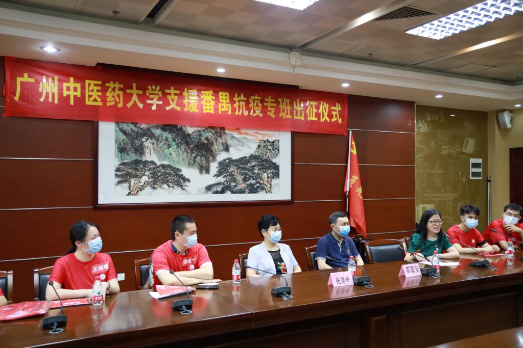 6月18日上午,支援番禺抗疫专班出征仪式在大学城校区办公楼102会议室举行。学校党委书记张建华、党委副书记邓国安参加了仪式。张建华为同学们加油鼓劲。指出,支援番禺抗疫专班是我校在本轮广州疫情中派出的首支学生志愿者队伍,同学们“才下考场,又上战场”,在社会最需要的时候,挺身而出,这正是新时代青年应该有的风貌。强调,在接下来将要开展的为期五天的流行病学调查工作中,同学们要坚决服从命令、听从指挥,不怕苦、不怕累,义无反顾,不负使命与担当,展现广中医精神。她还嘱咐同学们,一定要做好自我防护,确保平安健康,如期保质保量地完成任务。