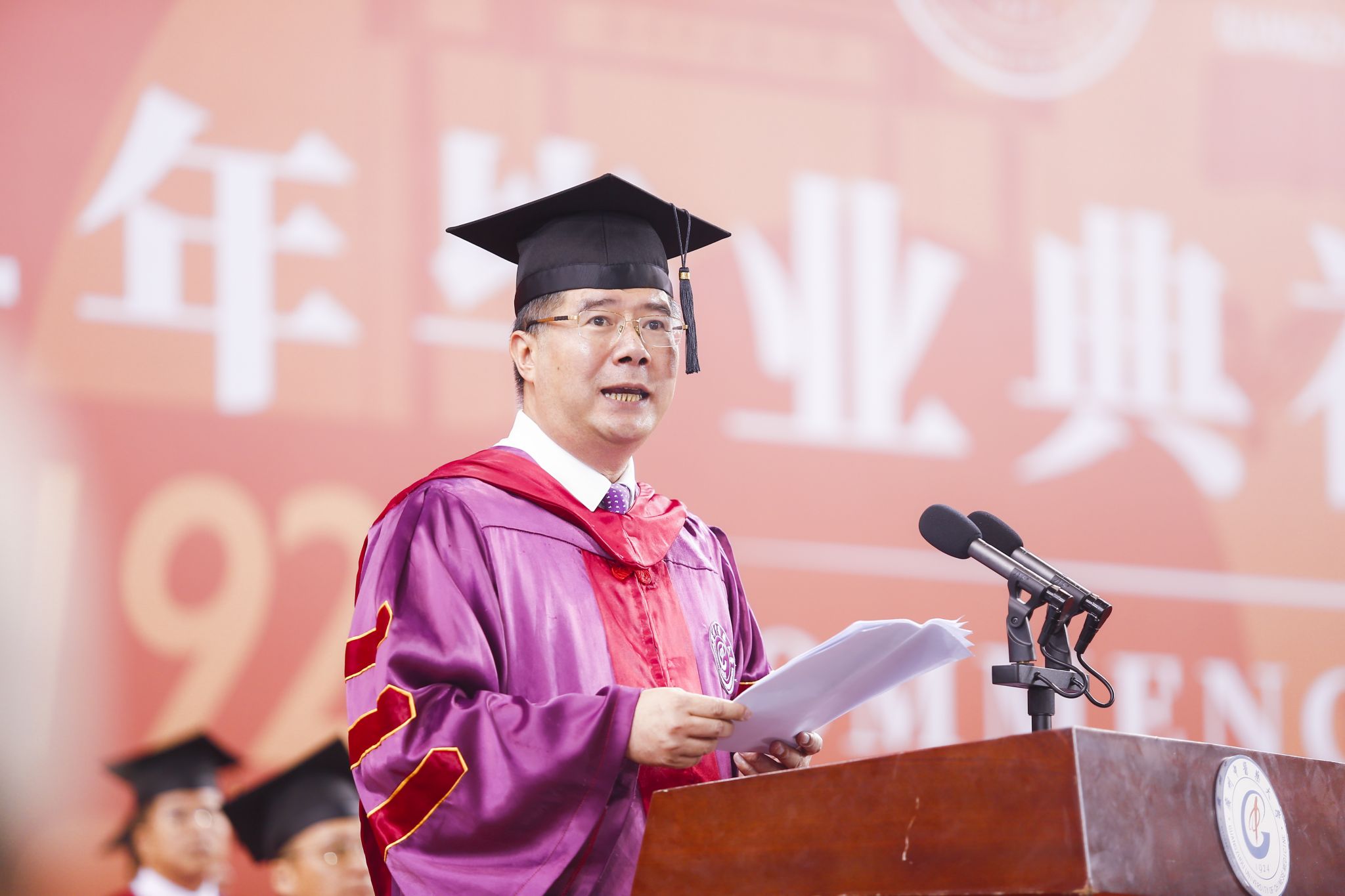 毕业典礼上,周岱翰教授为母校捐赠100万元设立奖教学金,助力高水平大学建设。