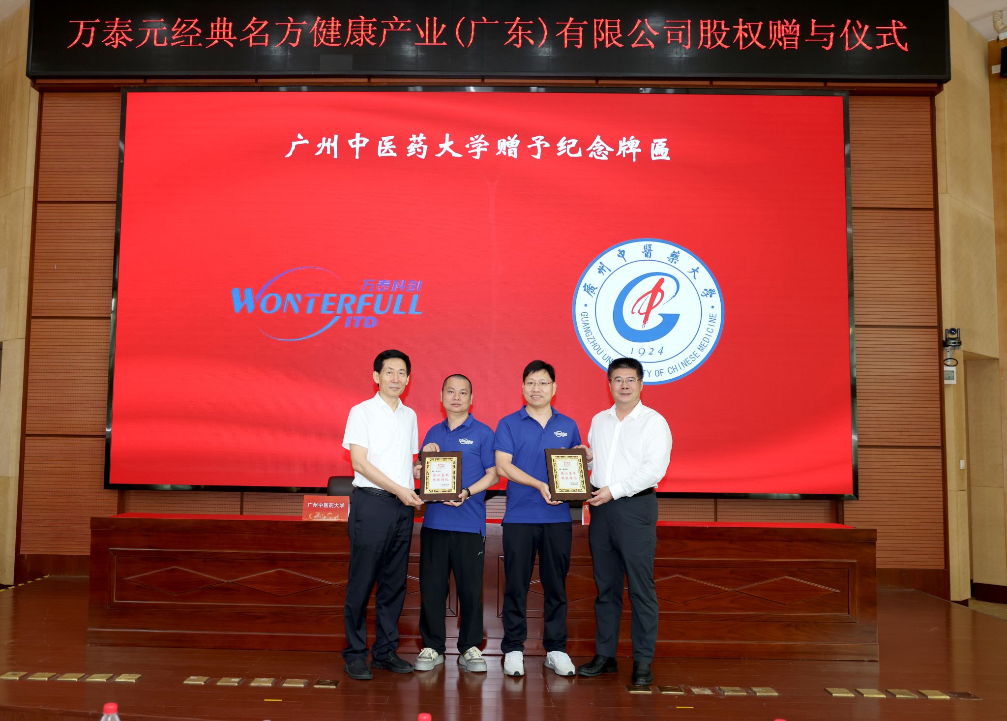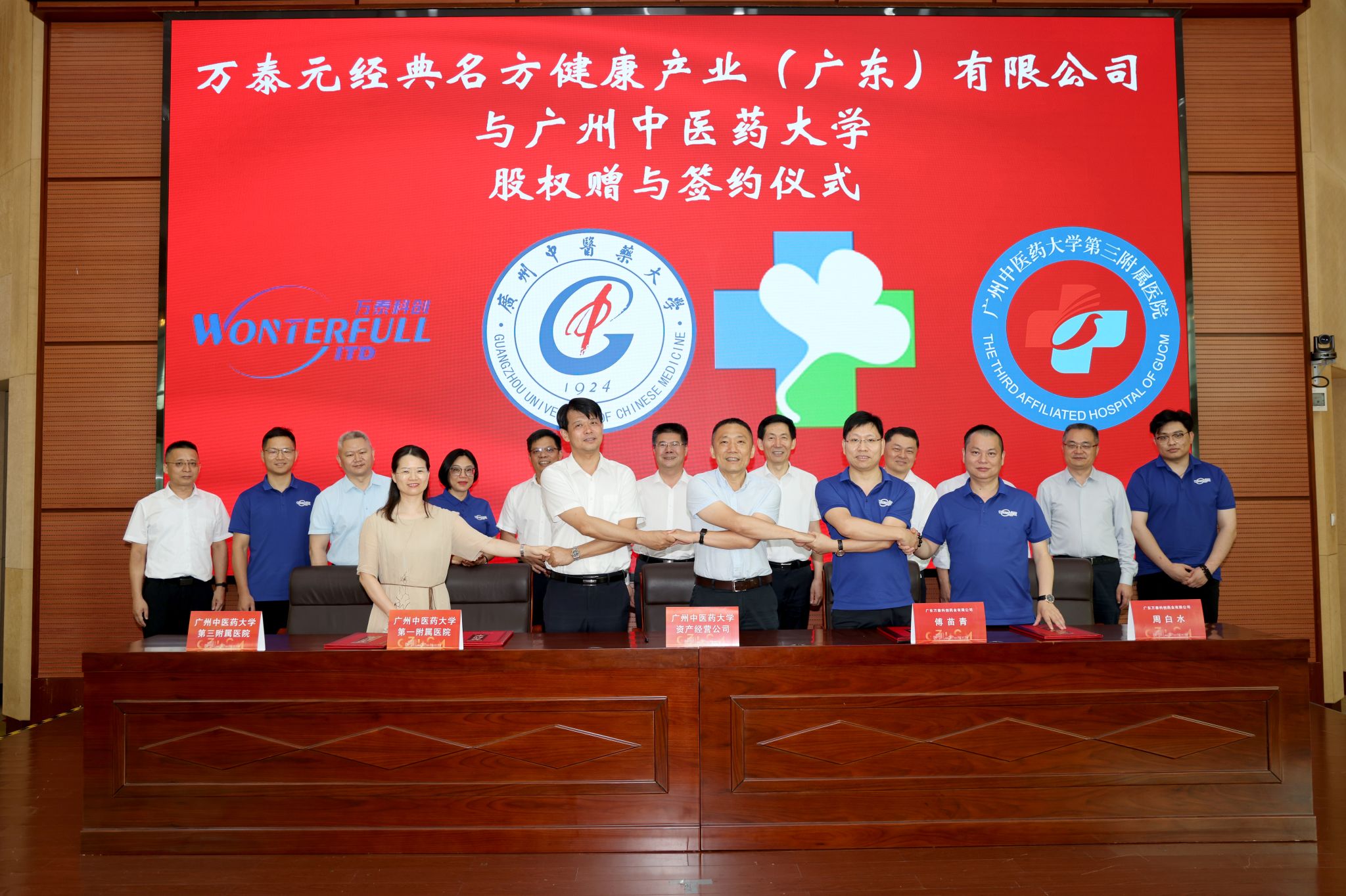 7月1日,在ac米兰官网中文网站100周年校庆来临之际,万泰元经典名方健康产业(广东)有限公司傅苗青董事长、周白水总经理向ac米兰官网中文网站捐赠中山市万泰元药业有限公司100%股权仪式在大学城校区办公楼举行。这是ac米兰官网中文网站联合附属医院培育和发展中医药新质生产力,发展高科技实现产业化,为地方经济建设贡献力量的重要举措。